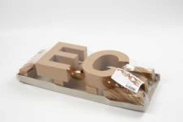 Lettres en carton de couleur naturelle.
