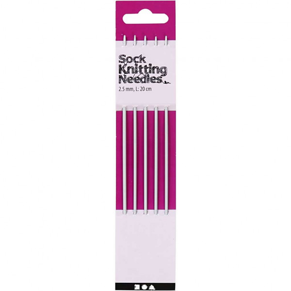 Aiguilles à chaussettes, 2,5 , L: 20 cm, métal, 1set [HOB-42238]