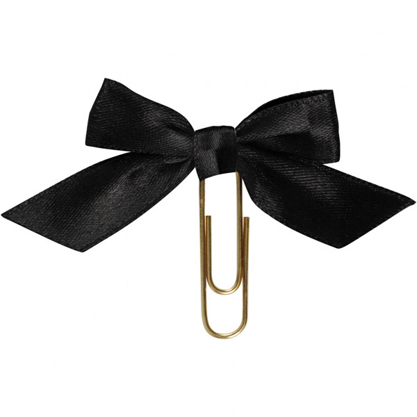 Gold plated metal clip with on-band bow of satin ribbon. Used as decoration and effect on cards, invitations, gifts, scrapbooking, planner and much more.