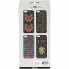Une housse en silicone qui convient à un iPhone. La housse est perforée avec de petits trous pour la broderie. 4 motifs montrés sur l'emballage.