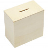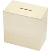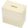 Tirelire en bois claire avec bouchon pour refermer en-dessous.