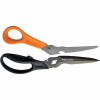 Ciseaux Fiskars multifonctionnels avec lame en titane. Peuvent être employés comme coupe fil, coupe câble, décapsuleur. Un coupe ruban et un aiguiseur de ciseaux sont inclus dans le manche.