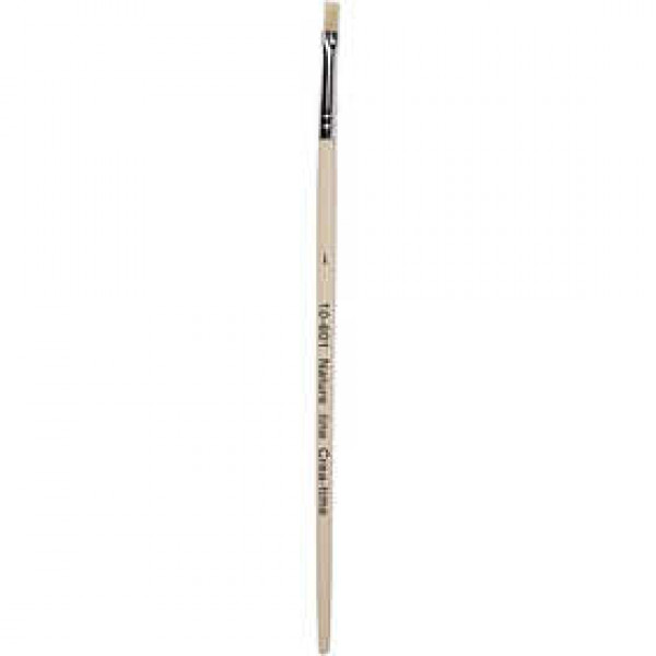Pinceau plat à poils de porc et manche court en bois non laqué - idéal pour l'application de peintures épaisses.