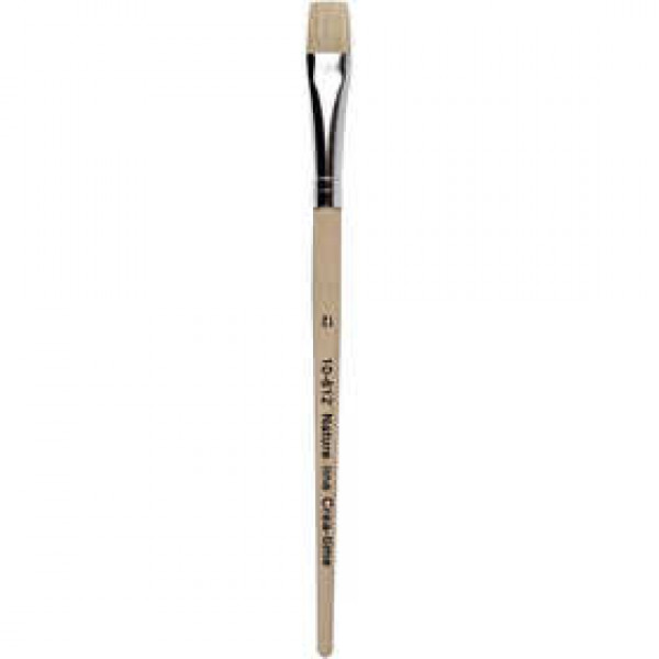 Pinceau plat à poils de porc et manche court en bois non laqué - idéal pour l'application de peintures épaisses.