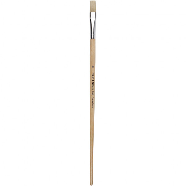 Pinceau plat à poils de porc et long manche en bois laqué - idéal pour l'application de peintures épaisses.