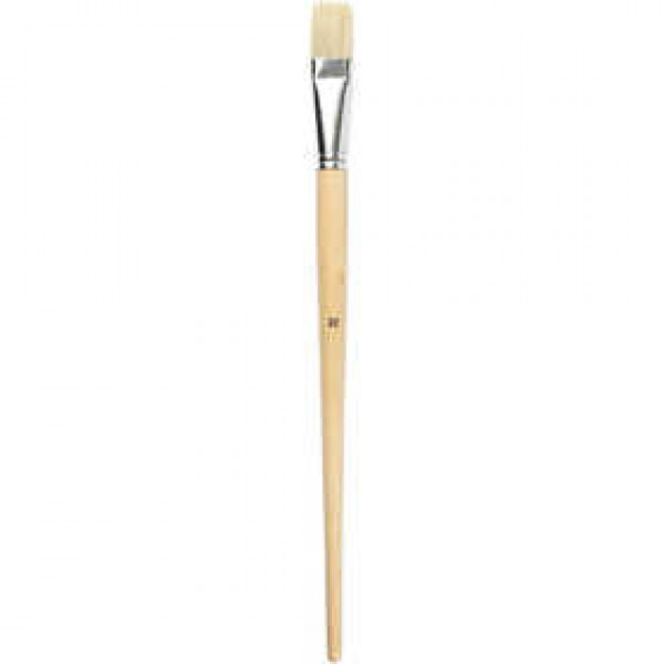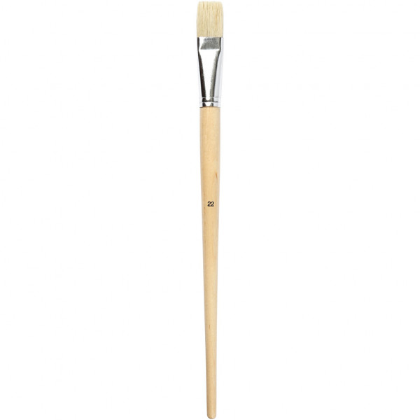 Pinceau plat à poils de porc et long manche en bois laqué - idéal pour l'application de peintures épaisses.