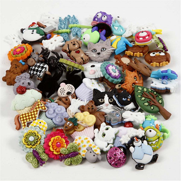 Boutons à motifs , d: 15-45 mm, 19Pqs. [HOB-40345]