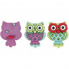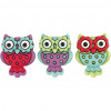3 boutons en plastiques en formes originales sur le thème des hiboux.