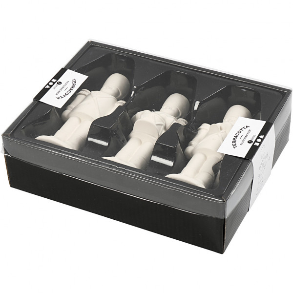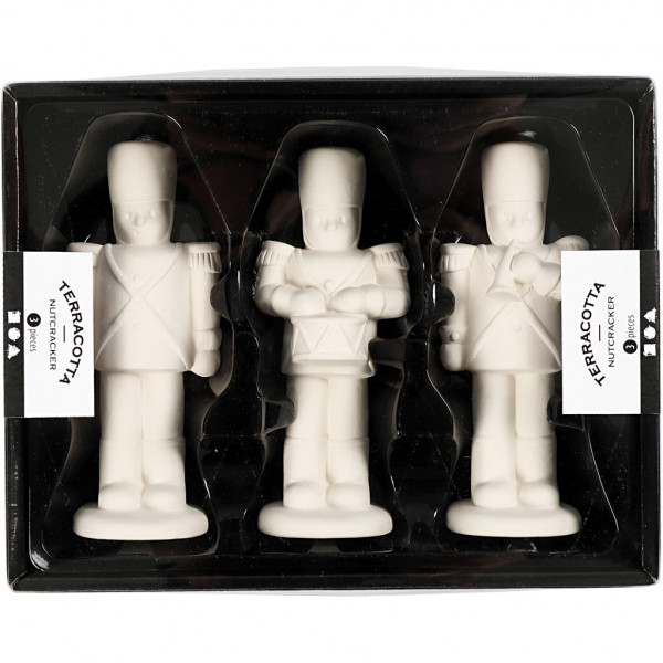 Set de 3 casse-noisette en terre cuite non traitée avec différents instruments.