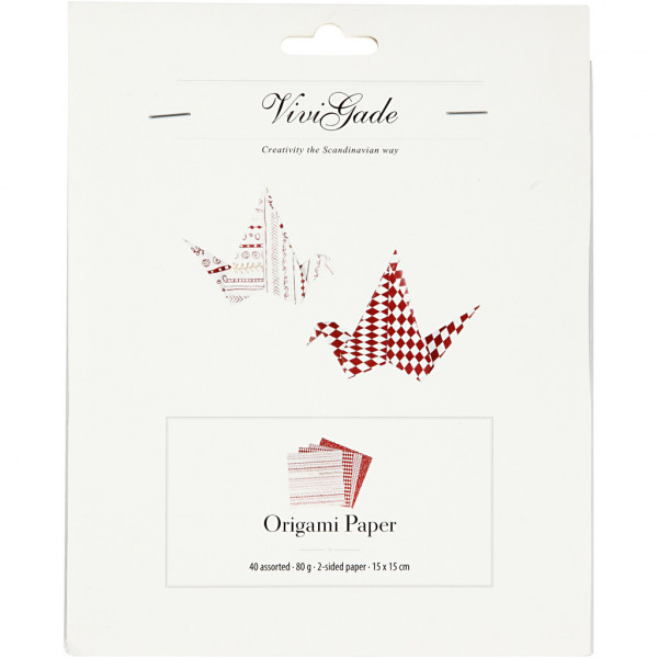 Papier Origami, dim. 15x15 cm, 80 gr, rouge, 40flles [HOB-25371]
