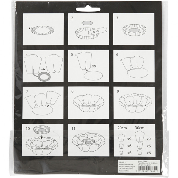 Fleurs en papier, noir, d: 15+25 cm,  230 gr, 2pièces [HOB-599902]