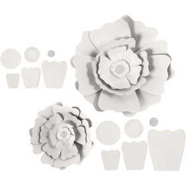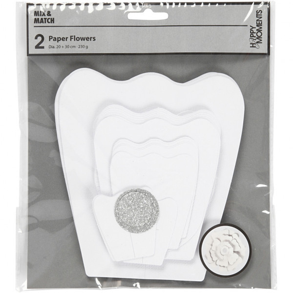 Fleurs en papier, blanc, d: 15+25 cm,  230 gr, 2pièces [HOB-599901]