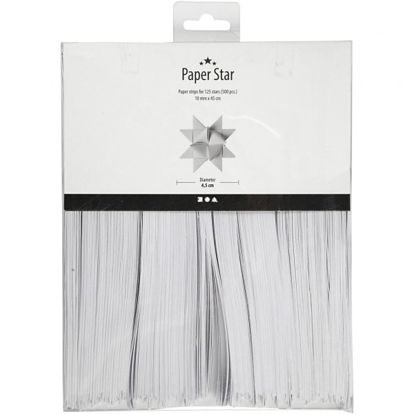 Bandes de papier étoiles, l: 10 mm, d: 4,5 cm, blanc, 500bandes, L: 45 cm [HOB-20931]