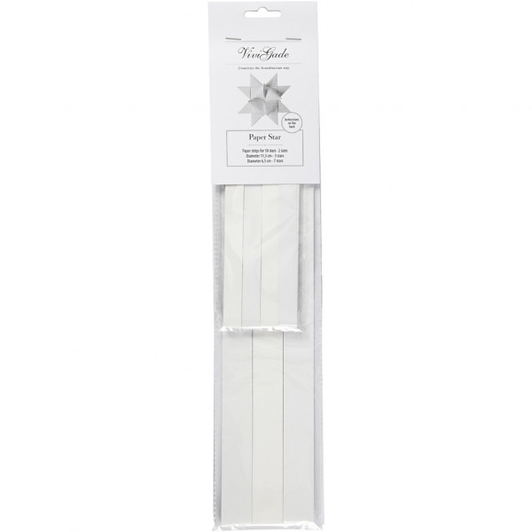 Bandes de papier étoiles unicolores en deux tailles, de la série de chez Vivi Gade Design. Le diam. indique la taille de l'étoile terminée. Instructions incluses.