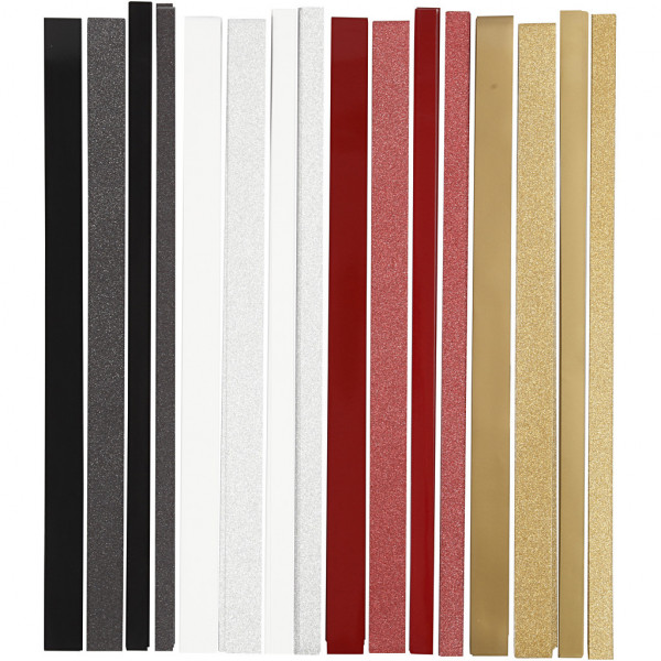 Bandes de papier étoiles, l: 15+25 mm, d: 6,5+11,5 cm, pailletées et vernies, 4x10Pqs., L: 44+78 cm [HOB-24354]