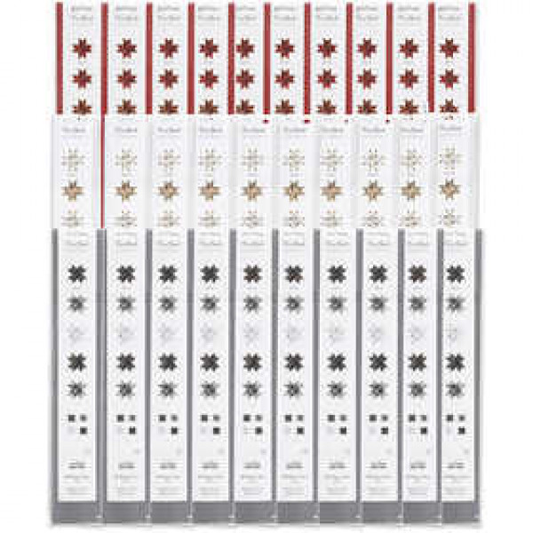 Assortiment de bandes de papier multicolorées de deux tailles au design de chez Vivi Gade. 3 collections de 3 designs avec impression sur 2 faces et des détails dorés métallisés qui subliment les pointes. Le diamètre indique la taille de l'étoile.