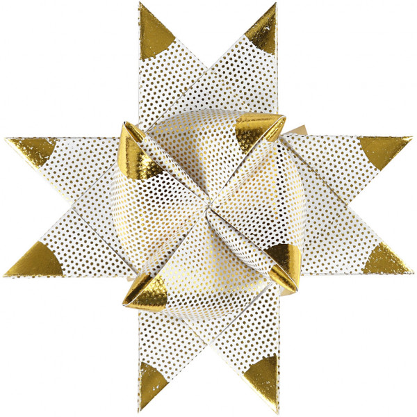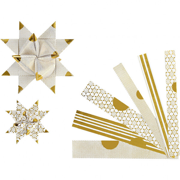 Bandes de papier étoiles, l: 15+25 mm, d: 6,5+11,5 cm, blanc, or, pointes métalliques, 48bandes, L: 44+78 cm [HOB-22562]