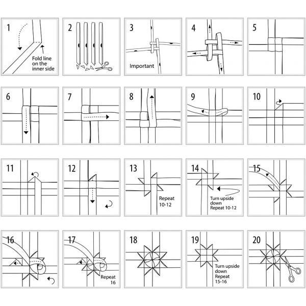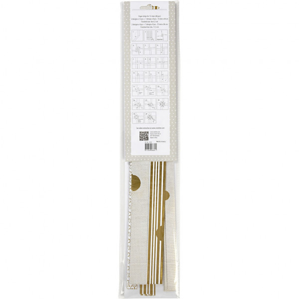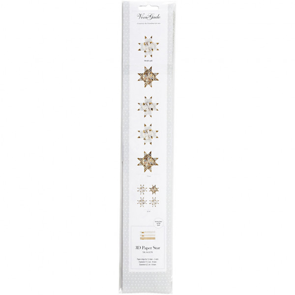 Paquet de trois motifs différents. Contenu: 32 bandes L: 15 mm & 16 bandes L: 25 mm. pour un total de 12 étoiles. La diamètre indique la taille de l'étoile terminée.