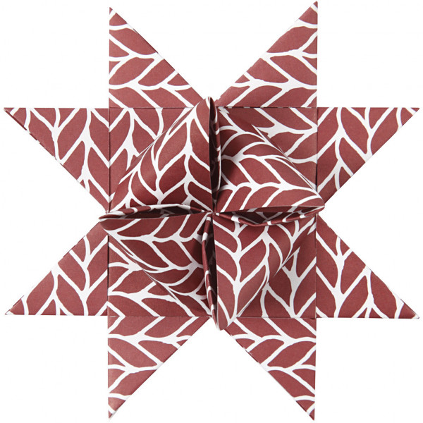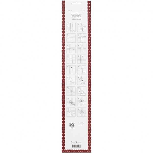 Assortiment de bandes de papier étoiles de deux tailles au design Vivi Gade, Un total de quatre designs différents avec impressions sur deux faces. Le diamètre indique la taille de l'étoile terminée. Avec instructions.