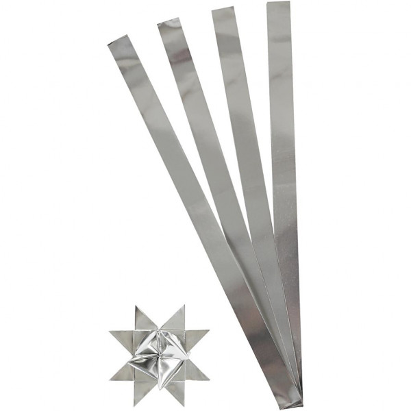 Bandes de papier étoiles, l: 25 mm, d: 11,5 cm, argent, 100bandes, L: 73 cm [HOB-20725]