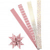Bandes de papier pour le tressage d'étoiles aux motifs de chez Vivi Gade. Un total de 4 bandes différentes, imprimées sur deux faces et décorées de fins détails en film métallisé. Le diam. indique la taille de l'étoile terminée. Instructions incluses.