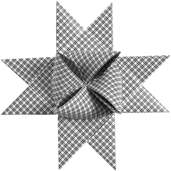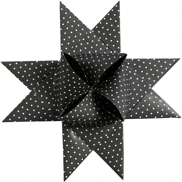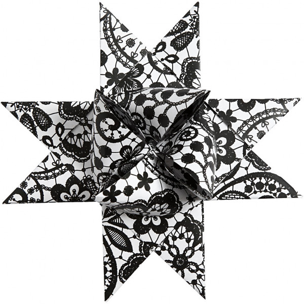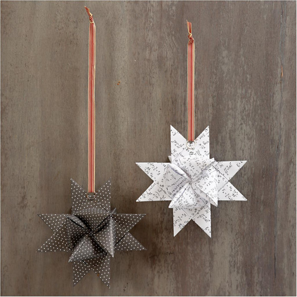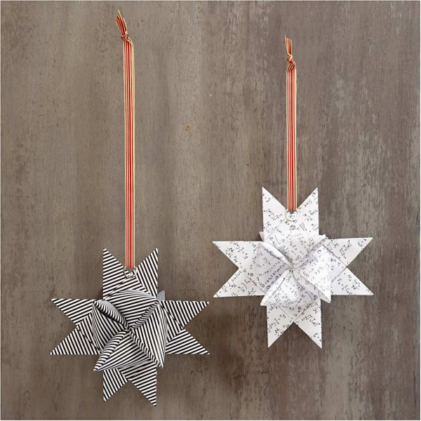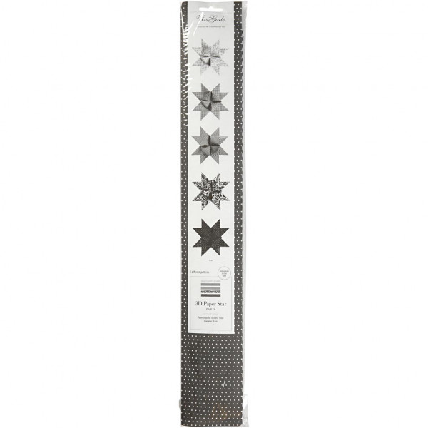 Bandes de papier étoiles double face de chez Vivi Gade Design. Le diamètre indique la taille finale de l'étoile. Avec instructions.