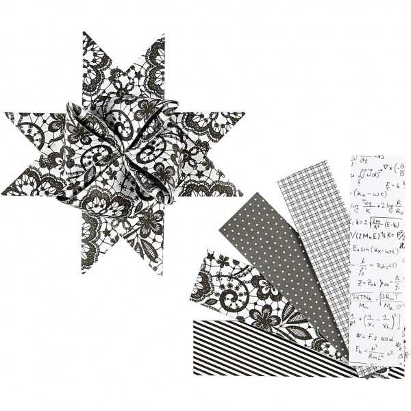 Bande de papier étoiles, l: 40 mm, d: 18 cm, blanc, noir, XL - classique, 40bandes, L: 100 cm [HOB-22577]