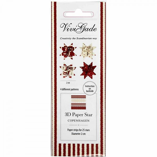 Bandes de papier imprimées double face de Vivi Gade Design. Diamètre indique la taille finale de l'étoile. Instructions incluses.
