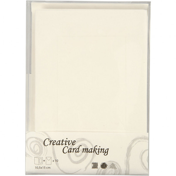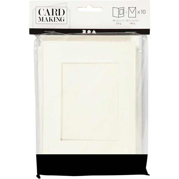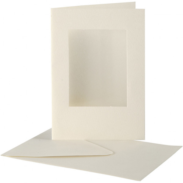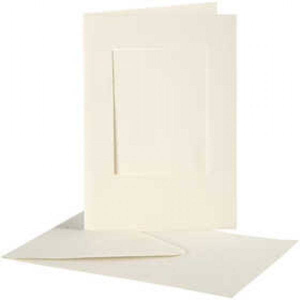 Cartes cadres et enveloppes, dimension carte 10,5x15 cm, la taille du trou 6,5x8,8 cm, blanc cassé, rectangulaire, 10sets [HOB-23720]