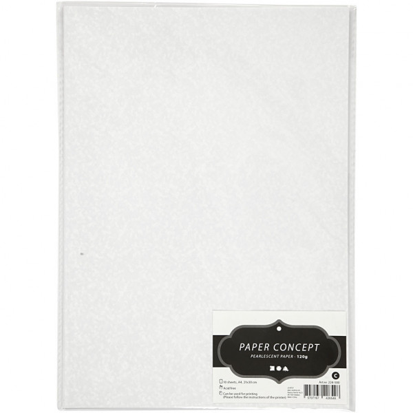 Papier nacré, A4 210x297 mm,  120 gr, wit parelmoer, cristal, 10flles [HOB-224500]