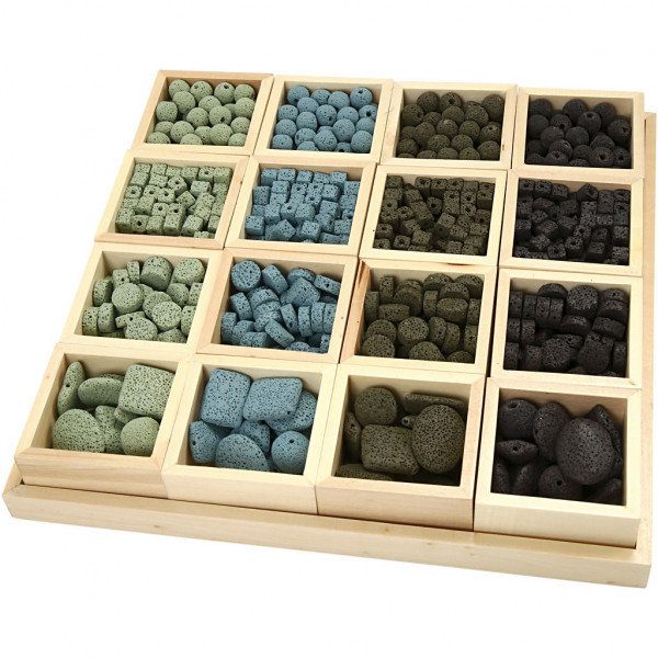 Perles de luxe - Assortiment, d: 6-37 mm, diamètre intérieur 2 mm, 1 set, harmonie bleu/vert [HOB-99059]