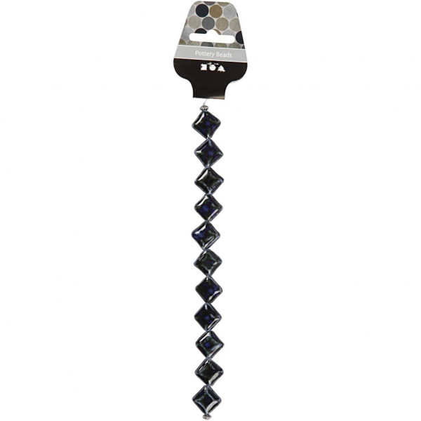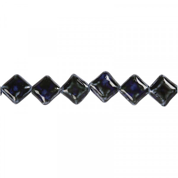 Perles en poterie, L: 19x19 mm, diamètre intérieur 2 mm, 11 pièces, bleu [HOB-69954]
