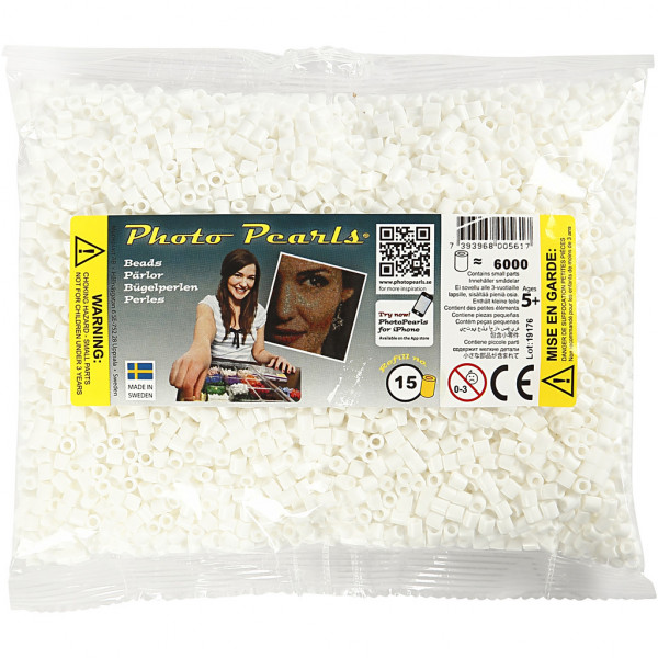 Photo Pearls, dim. 5x5 mm, la taille du trou 2,5 mm, blanc (15), 6000pièces [HOB-75515]