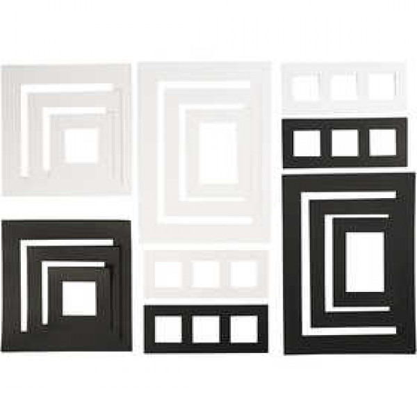 Assortiment de passe-partout dans 2 couleurs - blanc et noir et 7 formats en carton lourd.