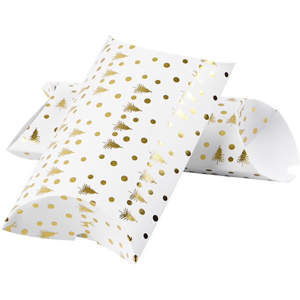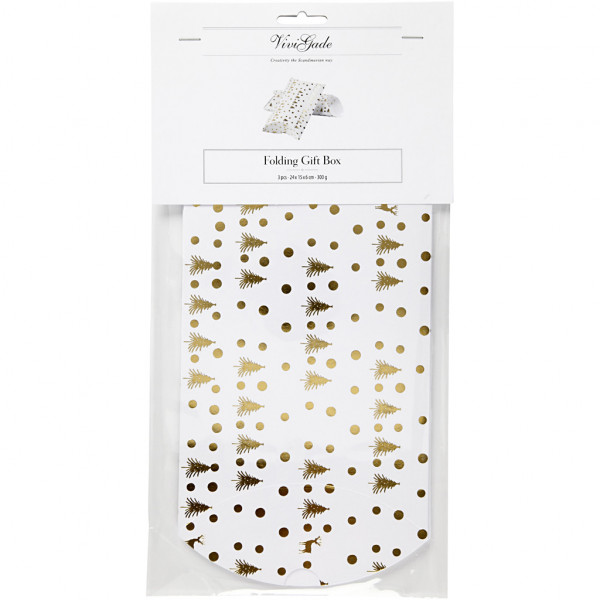 Boîte d'emballage à plier, sapin de Noël avec renne, dim. 23,9x15x6 cm,  300 gr, blanc, or, 3pièces [HOB-25360]
