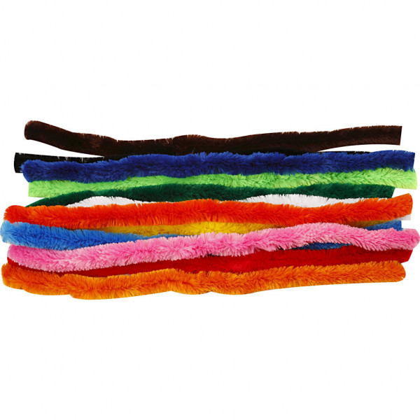 Fil chenille, épaisseur 25 mm, L: 45 cm, Couleurs assorties, 60assortis [HOB-51643]