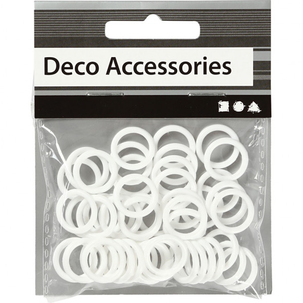 Bague en plastique, dim 15 mm, format intérieur 11 mm, blanc, 50pièces, épaisseur 2 mm [HOB-41257]