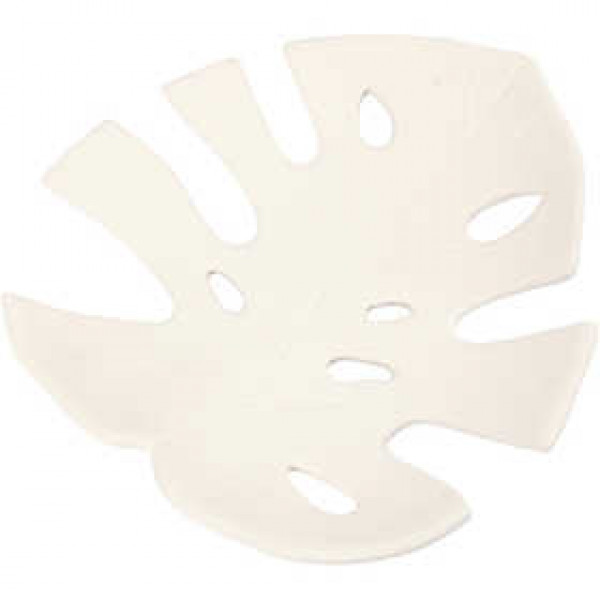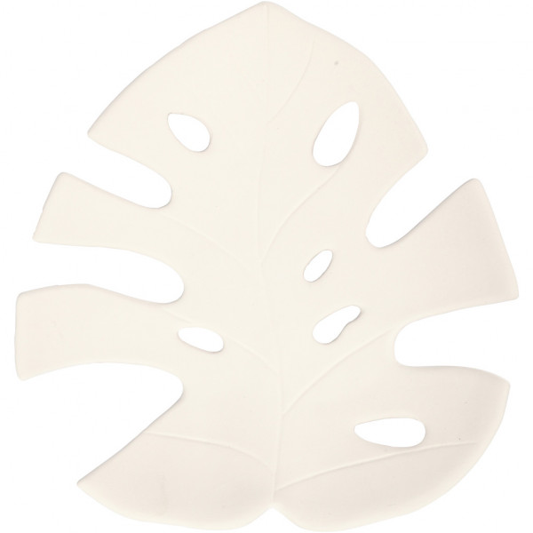 Plateau rond en terre cuite à la forme d'une feuille de monstera.
