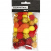 Pompons, d: 15+20 mm, jaune, orange, rouge, 48assortis [HOB-51882]