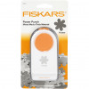 Perforatrice puissante de Fiskars. Perfore: bois vernis (max 1 mm), liège (mac 1 mm), cuir artificiel (max 0,9 mm), carton ondulé (max 1,38 mm), papier cartonné (max 2,4 mm) et mousse EVA ( max 1,5 mm).