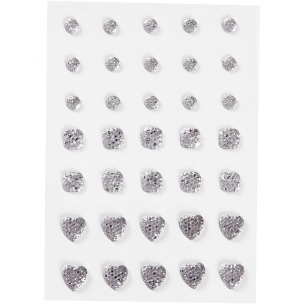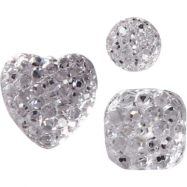 Pierres de strass, dim. 6+8+10 mm, argent, rond, carré, coeur, 35pièces [HOB-24377]