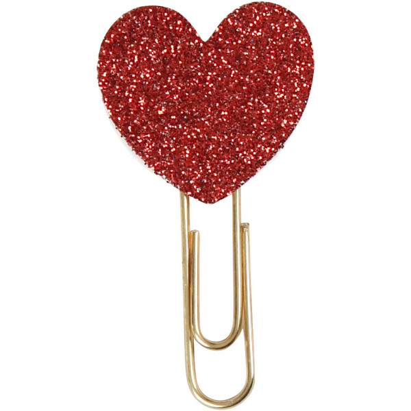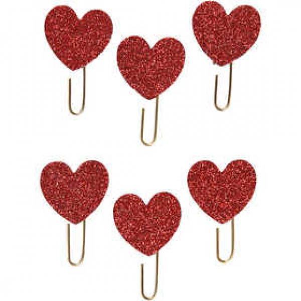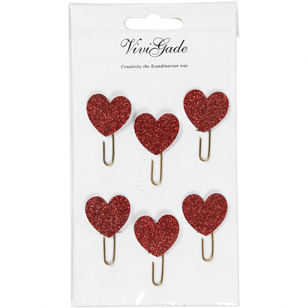 Trombonnes métalliques, d: 30 mm, glitter rouge, Coeur, 6pièces [HOB-24780]