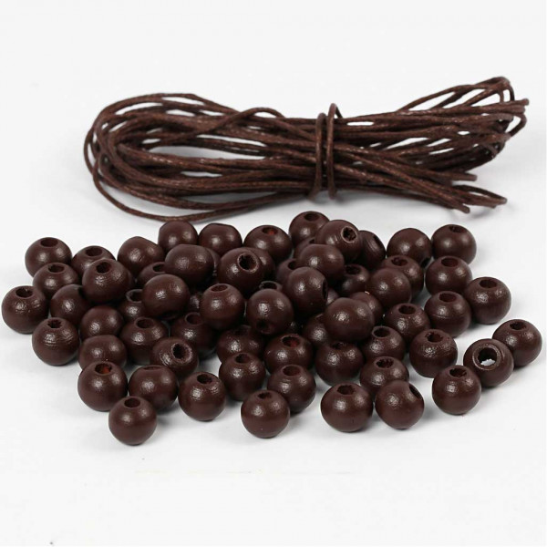 Perles en bois et corde en coton, d: 8 mm, ép. 3 mm, 1 set, brun [HOB-25239]