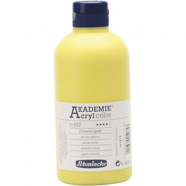Schmincke AKADEMIE® Acryl color, lemon yellow (222), , good fade resistant, 500ml [HOB-31853]