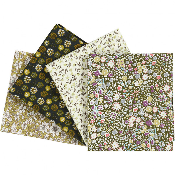 Tissu Patchwork, dim. 45x55 cm, 100 g/m2, 4 pièces, vert [HOB-44179]