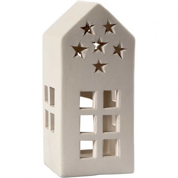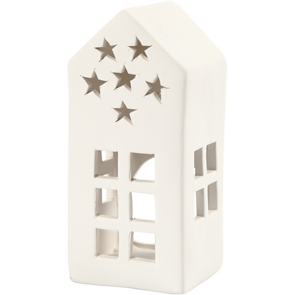 Bougeoir, maison, dim. 7x7 cm, h: 16 cm, blanc, 8pièces [HOB-50497]