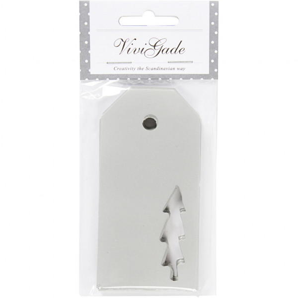 Étiquettes cadeau, dim. 5x10 cm, 300 gr, argent, Sapin de Noël, 15pièces [HOB-50993]