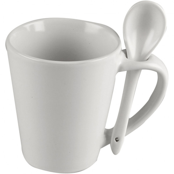 Tasses en porcelaine avec cuillère, h: 10 cm, d: 6-8,8 cm, 1 pièce, blanc [HOB-555940]