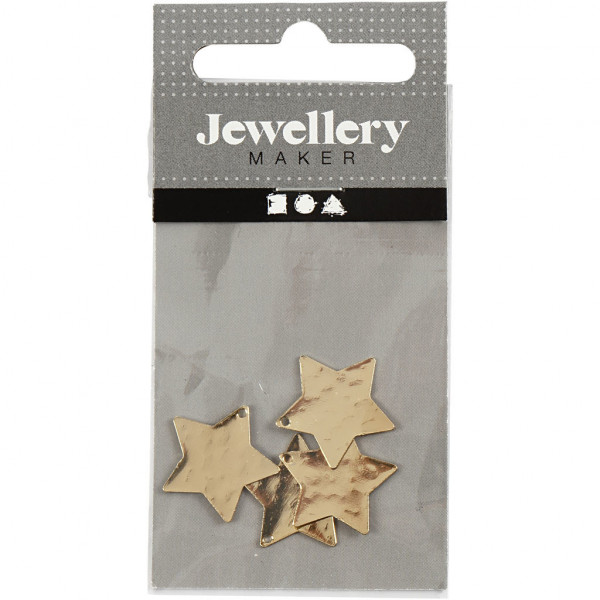 Étoile, d: 15 mm, la taille du trou 1 mm, doré, 4pièces [HOB-60569]