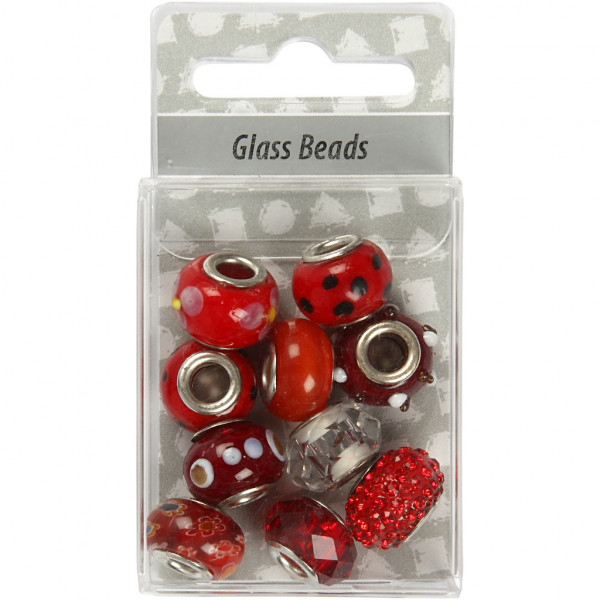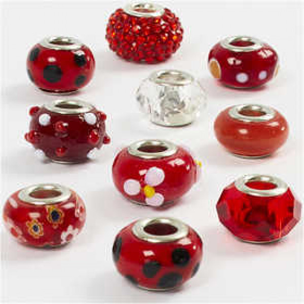 Breloques en verre, d: 13-15 mm, la taille du trou 4,5-5 mm, harmonie de rouges, 10assortis [HOB-68773]